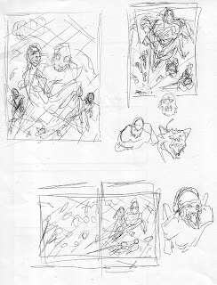 As I continued on with the roughs, a picture started to come a bit more into focus. I started to play a bit more with the details.