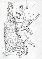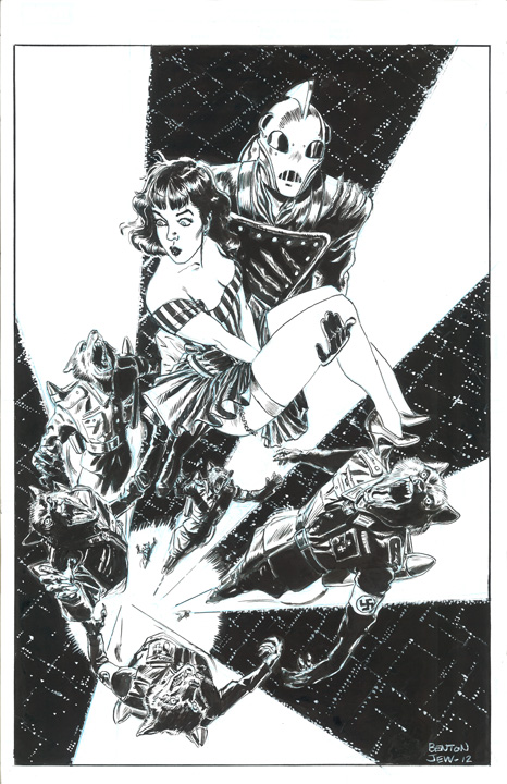 painting, but I just didn't have the time. Having had so much fun and artistic success with the recent Rocketeer poster, I decided to go back to good old pen, brush and india ink. And at least this way I'd have a piece of original art to sell at Comic-con.